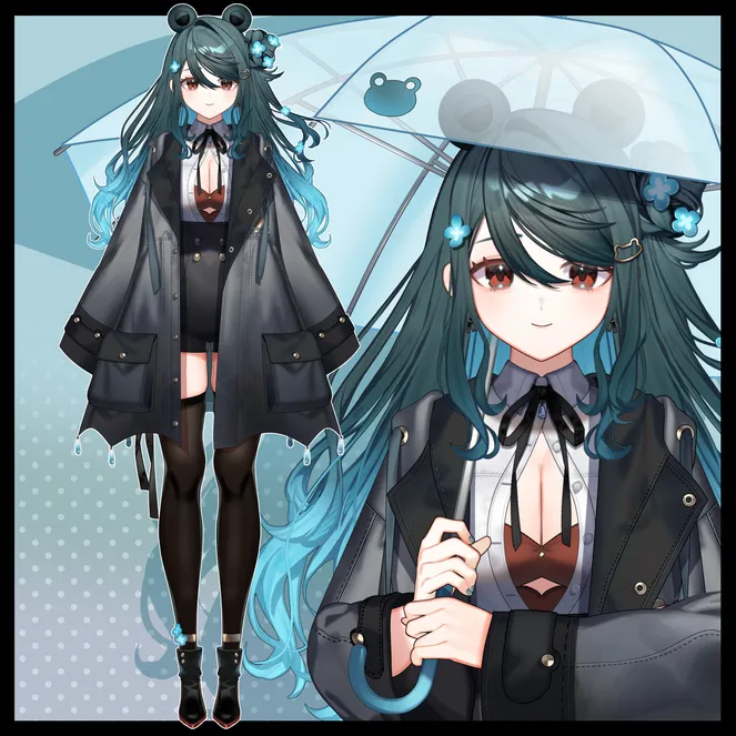 傘のようなシルエットの服、カエルの頭のような髪型など、モチーフ要素をうまく盛り込んでいて大変素晴らしいキャラクターデザインだと思いました!